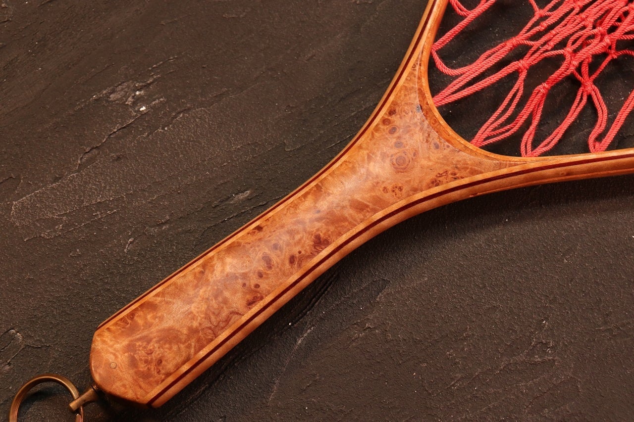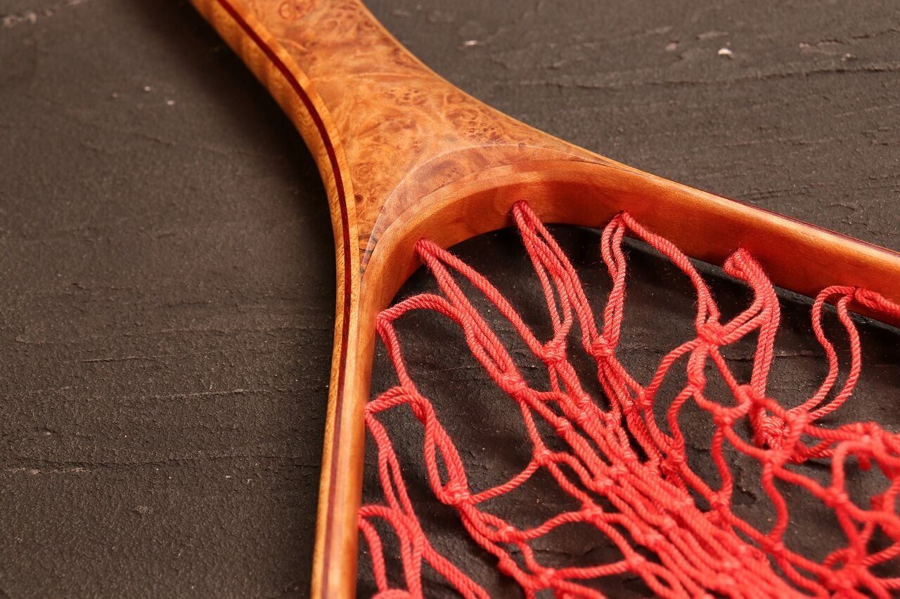 フレームは外側からカーリーメープル、ブラッドウッド、カーリーメープル